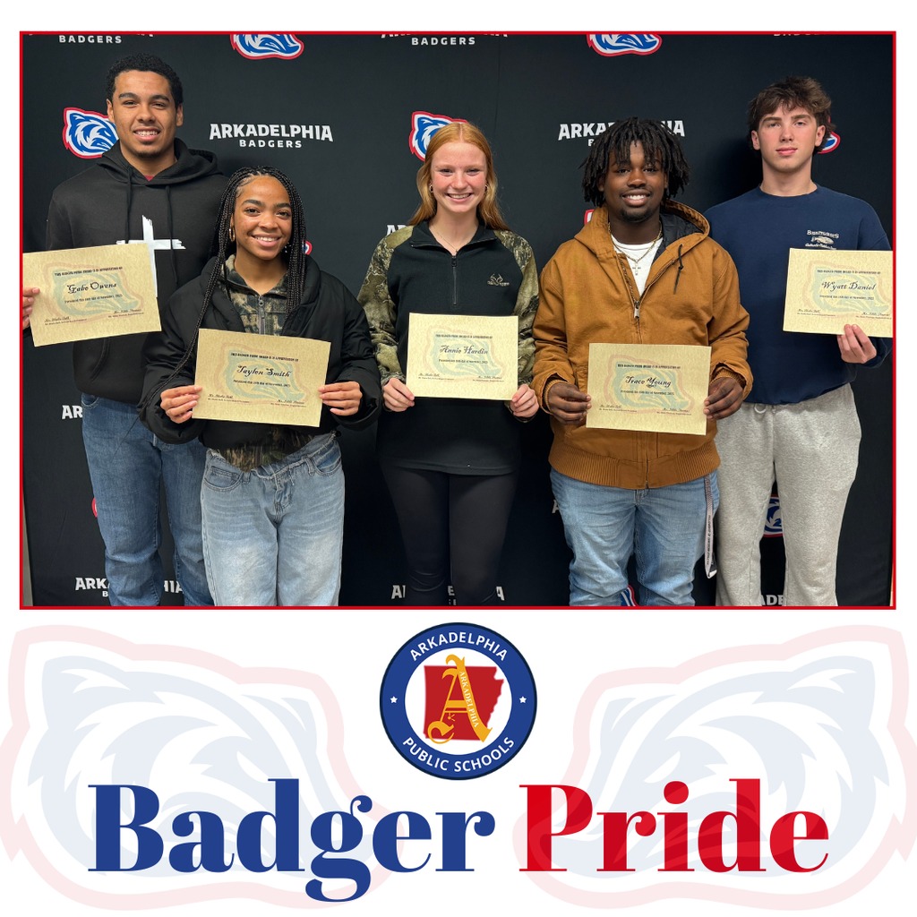 Arkadelphia High School Internship students were recognized at last month’s school board meeting for demonstrating exceptional TEAMWORK, one of our CKH Leadworthy character traits. The students collaborated to create a video for the new high school project—an effort they approached with maturity, enthusiasm, and true Badger pride. Although they will not directly benefit from a new high school, their willingness to serve reflects their strong leadership and commitment to the Arkadelphia community. We are proud of these students for their leadership, collaboration, and dedication to supporting their school and community.