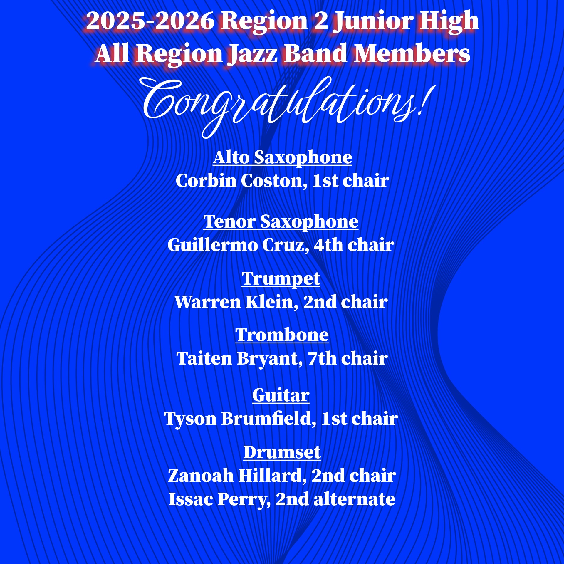 Congratulations to the Arkadelphia Bands’ Jr. High Jazz Band members and Senior High Band members on their outstanding performances and recognitions at this weekend’s All Region Auditions! Their hard work, talent, and dedication to music were on full display. |