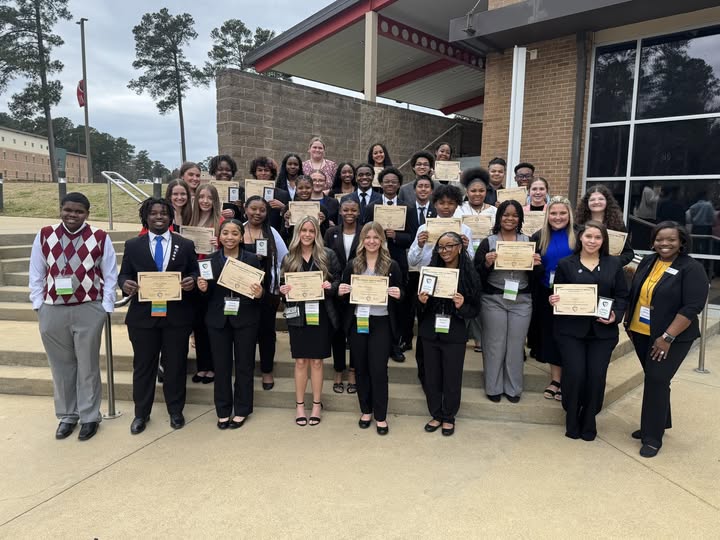 FBLA members made an impressive showing at the District IV Spring Conference, with 35 students competing in 27 events and 27 members qualifying for the State Leadership Conference in 20 events. The chapter also earned 1st Place for Largest Chapter Membership and 3rd Place for Largest Chapter Membership Market Share. Students earning top honors included Kaden Bryant, Kyla Crow, and Brinnya Davis (1st, Entrepreneurship); Raena Wheeler (1st, Hospitality & Event Planning); Spirit Golden, Kentayvon Green, and Aeva Waddell (1st, Intro to Business Presentation); Chloe Gray (1st, Intro to Social Media Strategy); Isabel Clark (2nd, Advanced Accounting); Dani Thomason (2nd, Healthcare Administration); Sophia Clark and Carsyn Vaughan (2nd, Public Service Announcement); Brylee Russey (2nd, Public Speaking); Zoey Windham (2nd, Visual Design); Trace Young (2nd, Who’s Who); Kaeley Pope (3rd, Intro to Business Concepts); Karington Beene (4th, Intro to Retail and Merchandising); Nevaeh West (4th, Intro to Supply Chain Management); James Bautista, Caelan Davis, and Caden Whitaker (4th, Marketing); Kalyn Garrett (5th, Advertising); Izzy Morris (5th, Intro to FBLA); Amarianna Thrower (5th, Intro to Marketing Concepts); Maqai Beasley (5th, Intro to Public Speaking); Bre’Yonna Brown (6th, Intro to Information Technology); and Gerren Williams (6th, Real Estate). We are proud of the dedication and leadership shown by every member as they prepared for the State Leadership Conference this spring.
