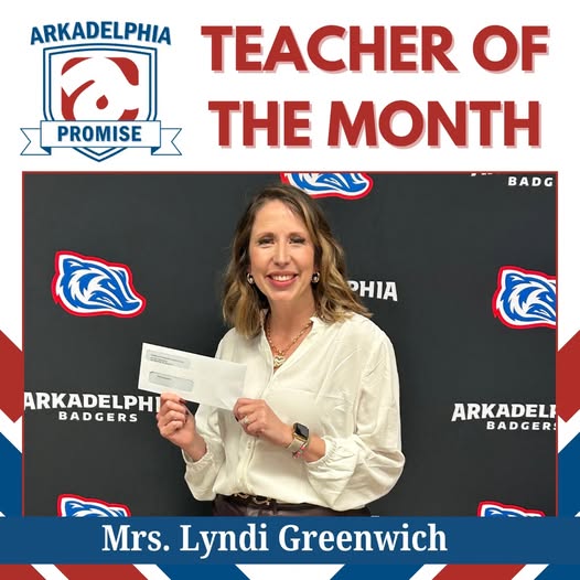 The Arkadelphia Promise announced Lyndi Greenwich as the December Teacher of the Month. Mrs. Greenwich, an Algebra I teacher, has made a strong impact on students’ math skills and their confidence both inside and outside the classroom. She has also served as a leader and mentor, supporting her colleagues and the math department team. This recognition honors teachers who demonstrate excellence, passion for student success, and dedication to the profession—qualities Mrs. Greenwich consistently displays. She received a cash award made possible by the late Janice Stanford’s generous legacy donation to the Arkadelphia Promise Foundation. Congratulations to Mrs. Greenwich, and thank you for your commitment to academic excellence.