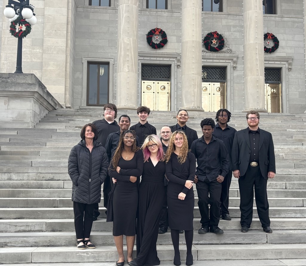 The Arkadelphia High School Chamber Choir performed at the Arkansas State Capitol during this week’s Sounds of the Season events. Goza Middle School and AHS Choir students will share their holiday talents at the Christmas Concert on Thursday, December 11th, at 7:00 p.m. in the AHS Little Theater. The choirs are directed by Mr. Aaron McCain. |