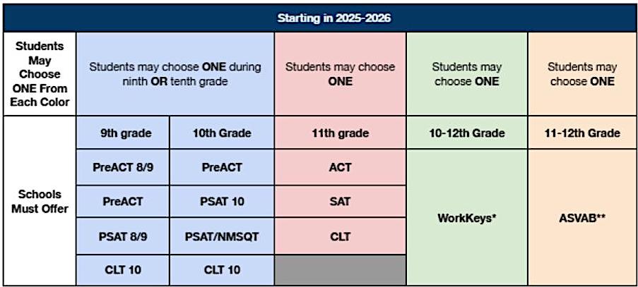 Arkansas Act 724 gave AHS students in grades 9–12 new optional testing choices to support college, career, and military planning. Students attended grade-level assemblies to learn about their options and completed a Google Form to make their selections. Parents received a letter and slideshow with details to help guide their student in choosing the tests that best fit their future goals. |