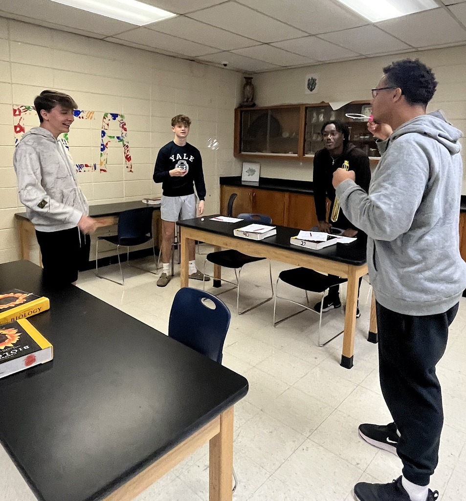 Before the break, AP Environmental Science students used a hands-on bubble activity to learn about K-selected vs. r-selected species. Students saw how K-selected “parents” care for a few fragile bubbles, while r-selected “parents” release many with minimal care—a fun and memorable way to explore survival strategies in nature. |