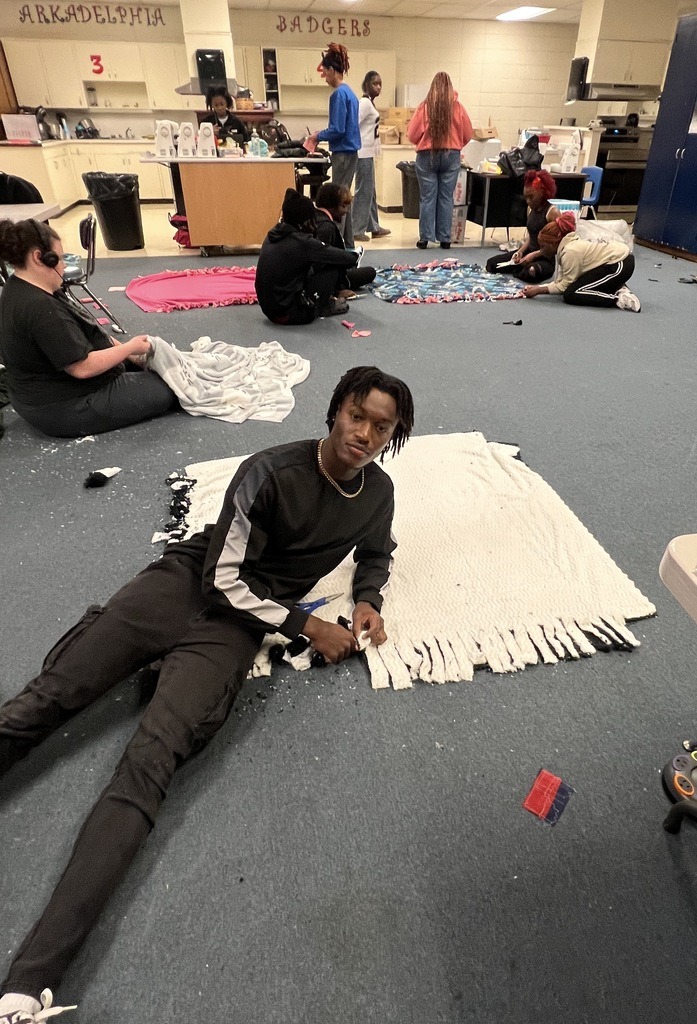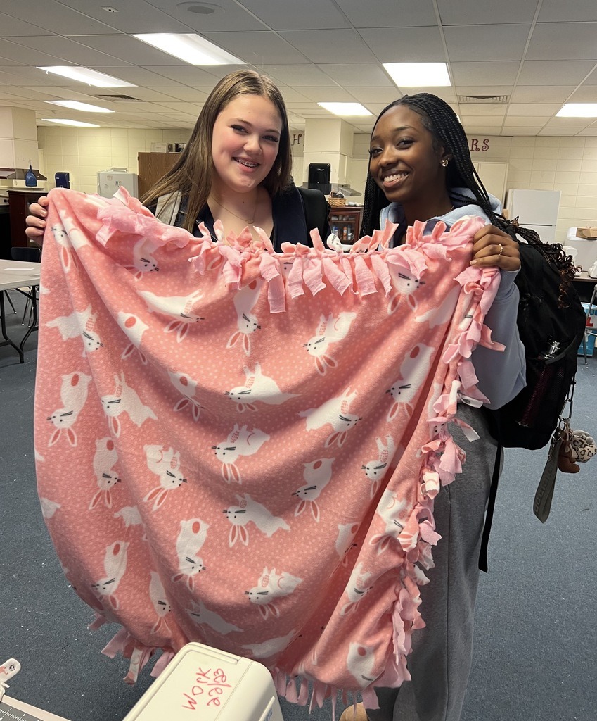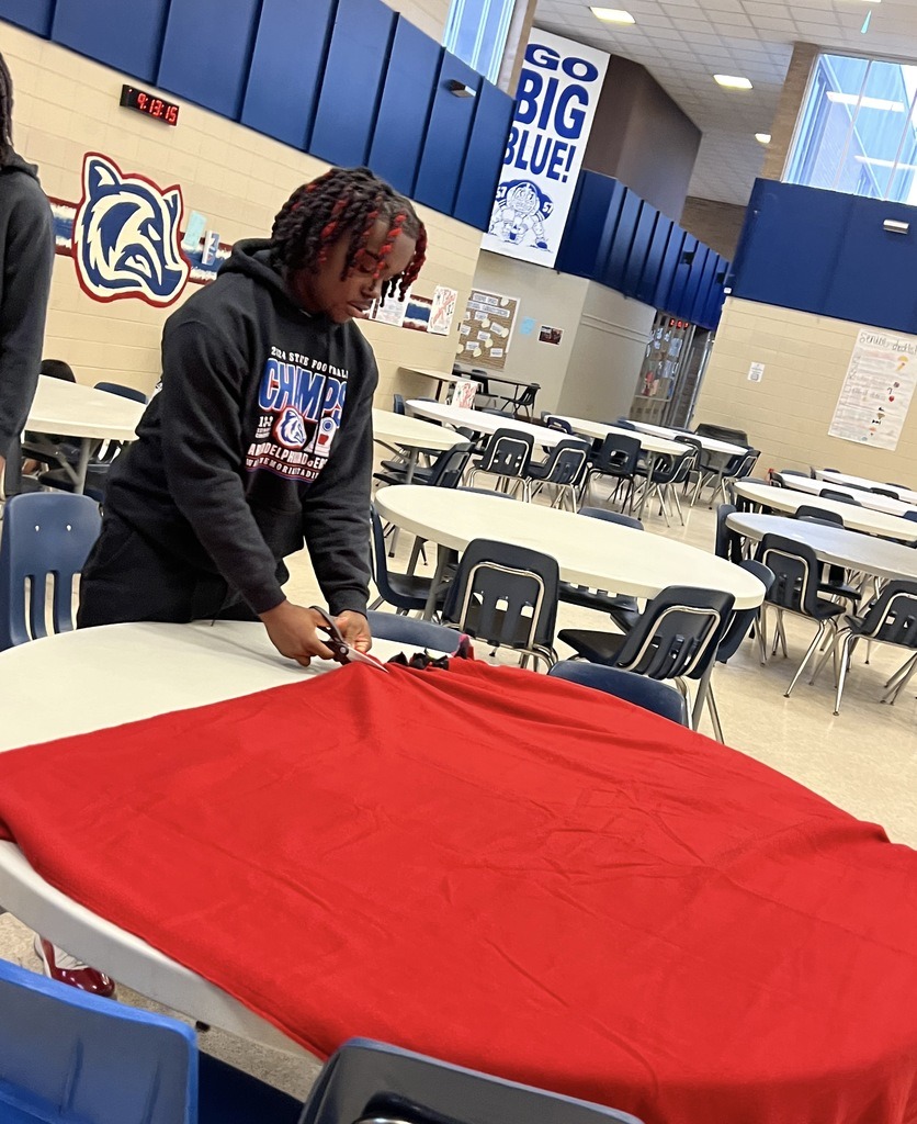 Students in Mrs. Robin Jones’ Family and Consumer Sciences class got hands-on experience making cozy tie blankets. They practiced skills like sewing and picking the perfect fabrics while showing creativity and teamwork. This project is part of the Career and Technical Education program, helping students learn practical skills they can use now and in the future. The finished blankets turned out beautifully, a true testament to their hard work! |