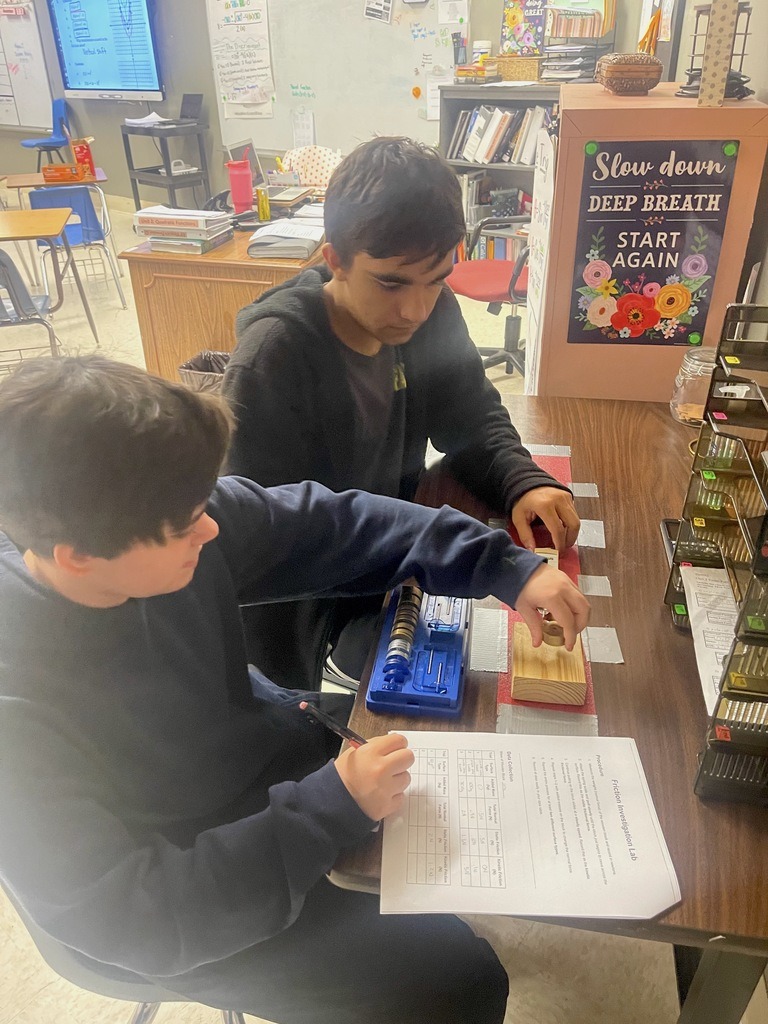 Before the break, AP Physics 1 students explored friction using wooden blocks, spring scales, and surfaces with different textures. They measured forces, graphed their data, and calculated coefficients of friction, gaining hands-on experience and a deeper understanding of how friction affects motion in real-world situations. |