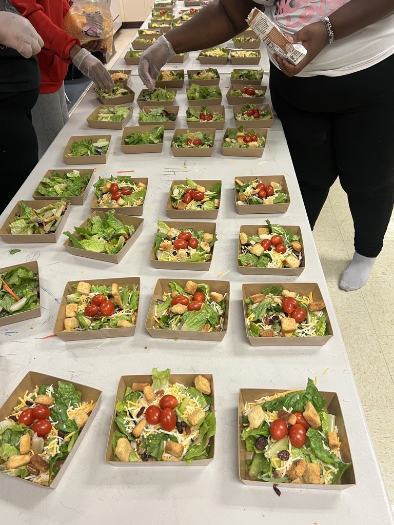 Mrs. Robin Jones’ FACS and Advanced Child Care students teamed up to help Dr. Patricia Wright and the Community Family Enrichment Center prepare salads for the Merry Motown Christmas event. Together, they made over 100 salads, with seniors Moryah Mitchell and Brittany Buford leading the team to finish ahead of schedule. These hands-on, community-connected projects showcase students’ skills and dedication! |
