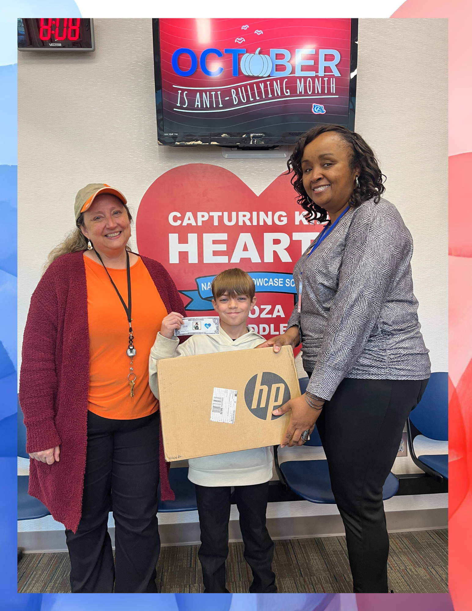 Grayson S., a 5th grade student, won the 1st 9 weeks' Badger Bucks Drawing! His prize was a laptop donated to the school by Patterson Federal Credit Union.