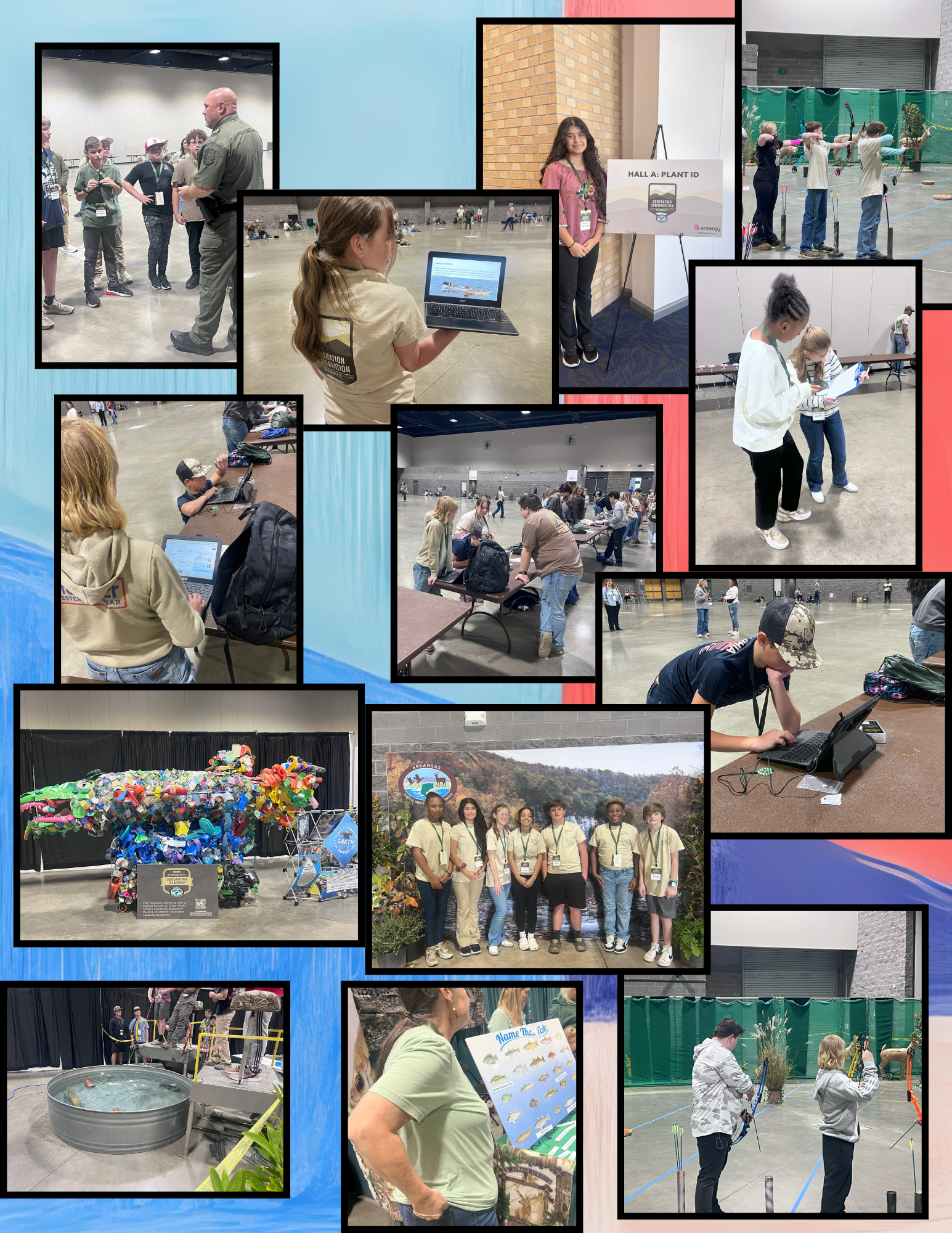 Students competed in Facility Design, Magazine Spread, Wildlife ID, Junior Cadet Challenge (Law Enforcement), Plant ID, Photography, STEM in Conservation, Wildlife Radio Tracking, and 3D Archery.