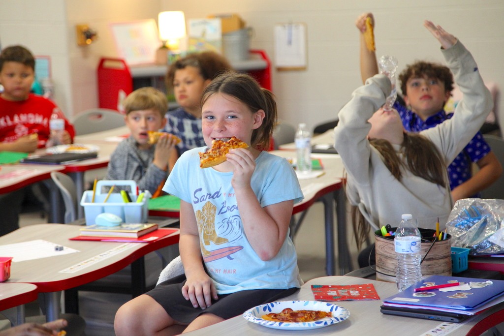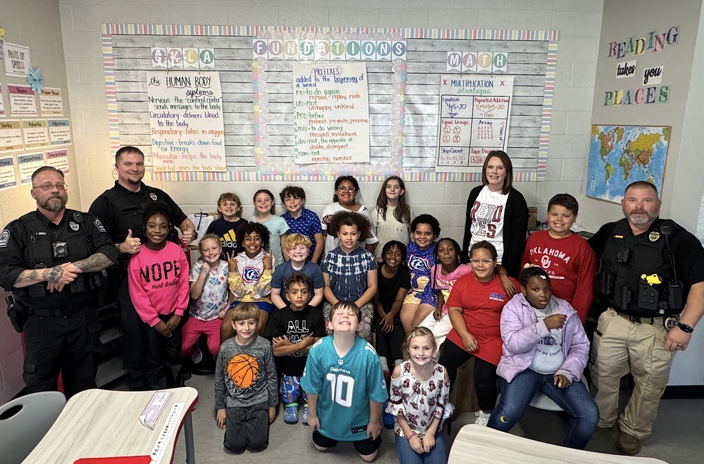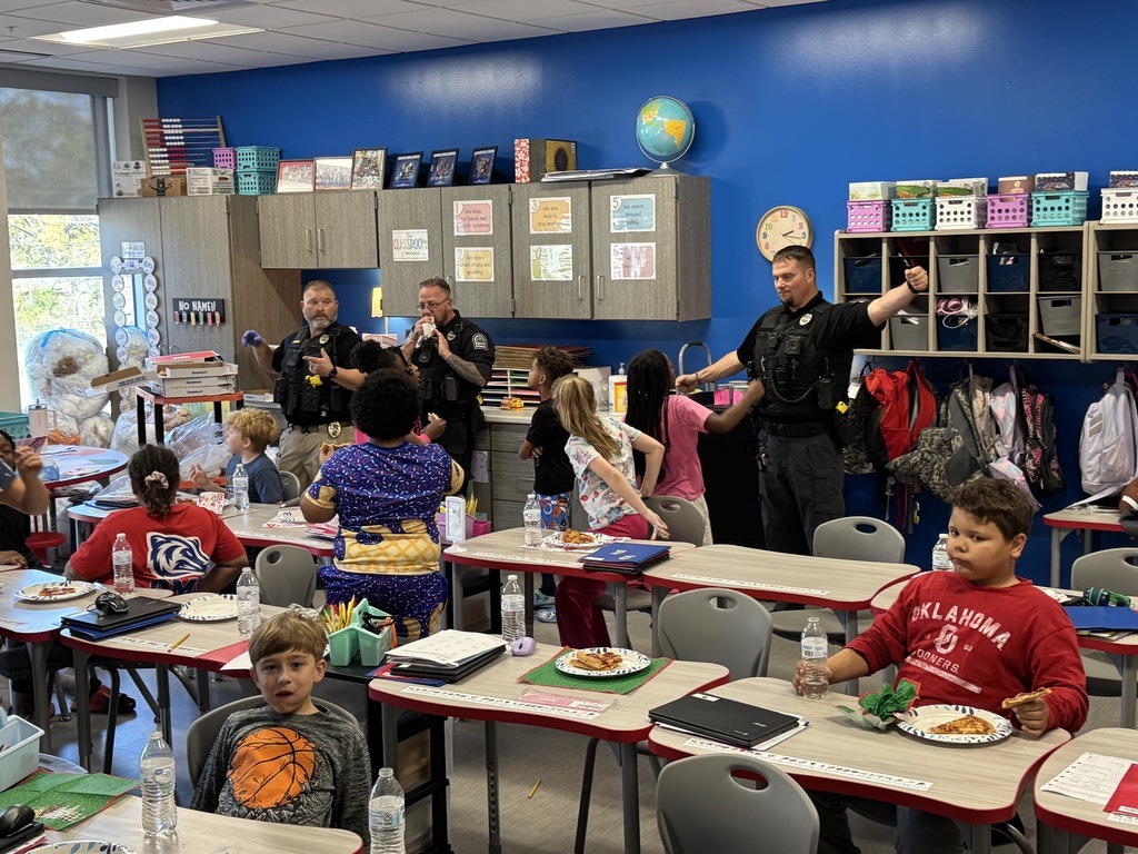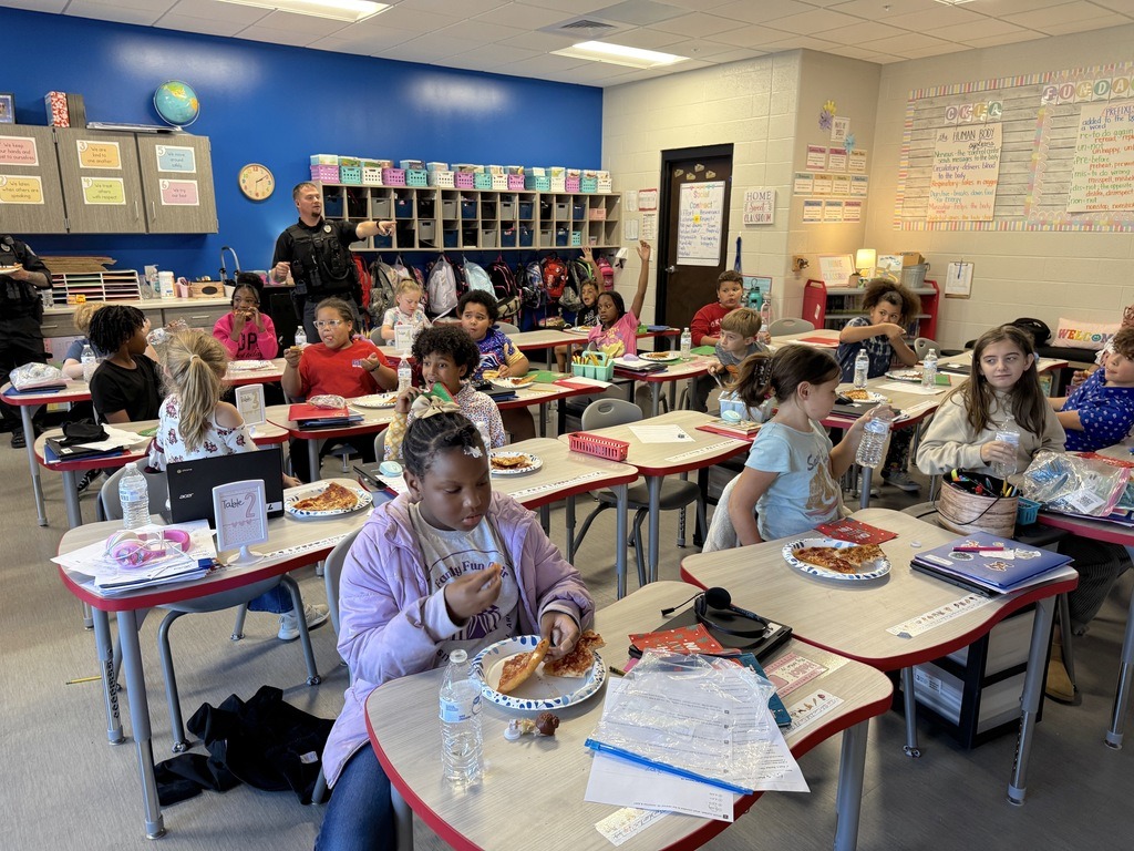 Students in Mrs. Erika Penfield's class was rewarded with Pizza With the Police. This class exemplified the CKH Word of the Month, TEAMWORK, and was chosen by Ms. Snowden to receive the party. A BIG thank you goes out to our school SROs, members of the Arkadelphia Police Department who show up each month, and Patterson Federal Credit Union for sponsoring the pizza. It is always a special time that students look forward to. |