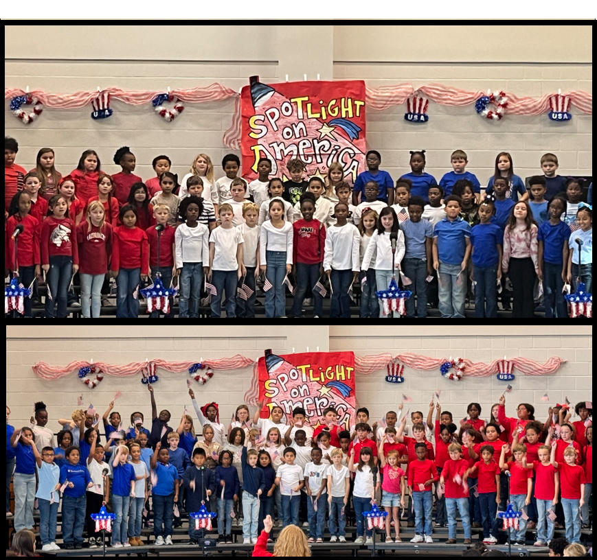 The Third Grade students presented the musical "Spotlight on America". Each group consisted of three classes and presented their musical twice: once during the day for fellow students and at a nighttime performance for families. |
